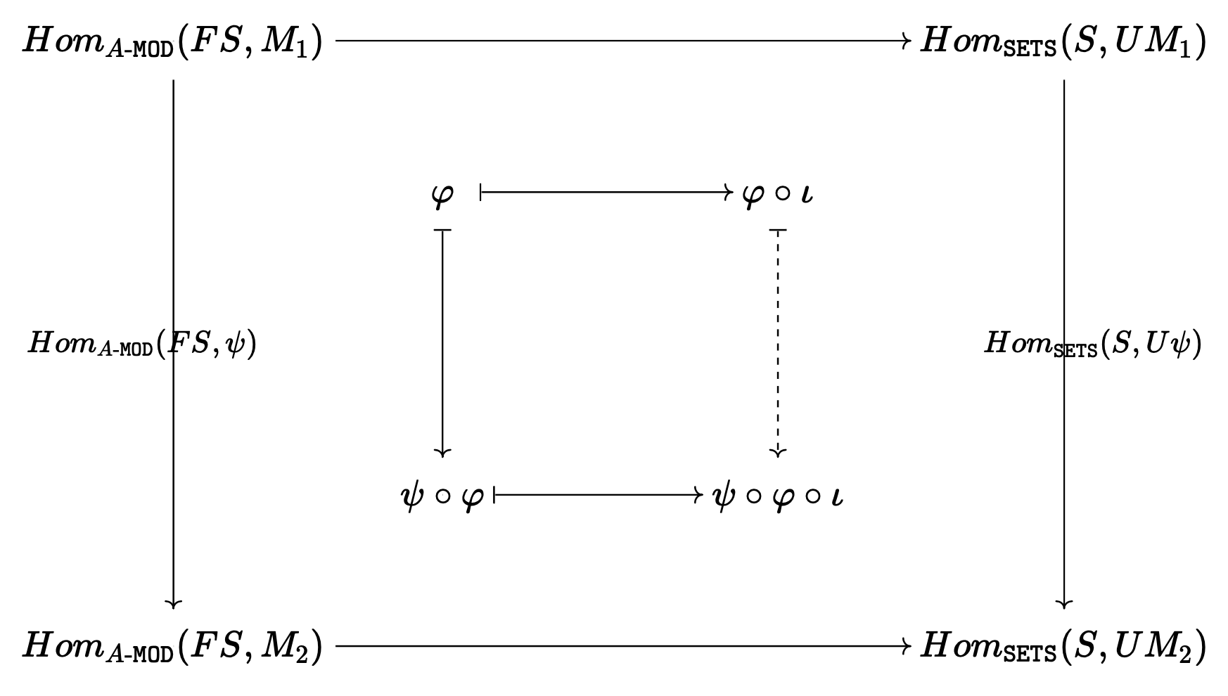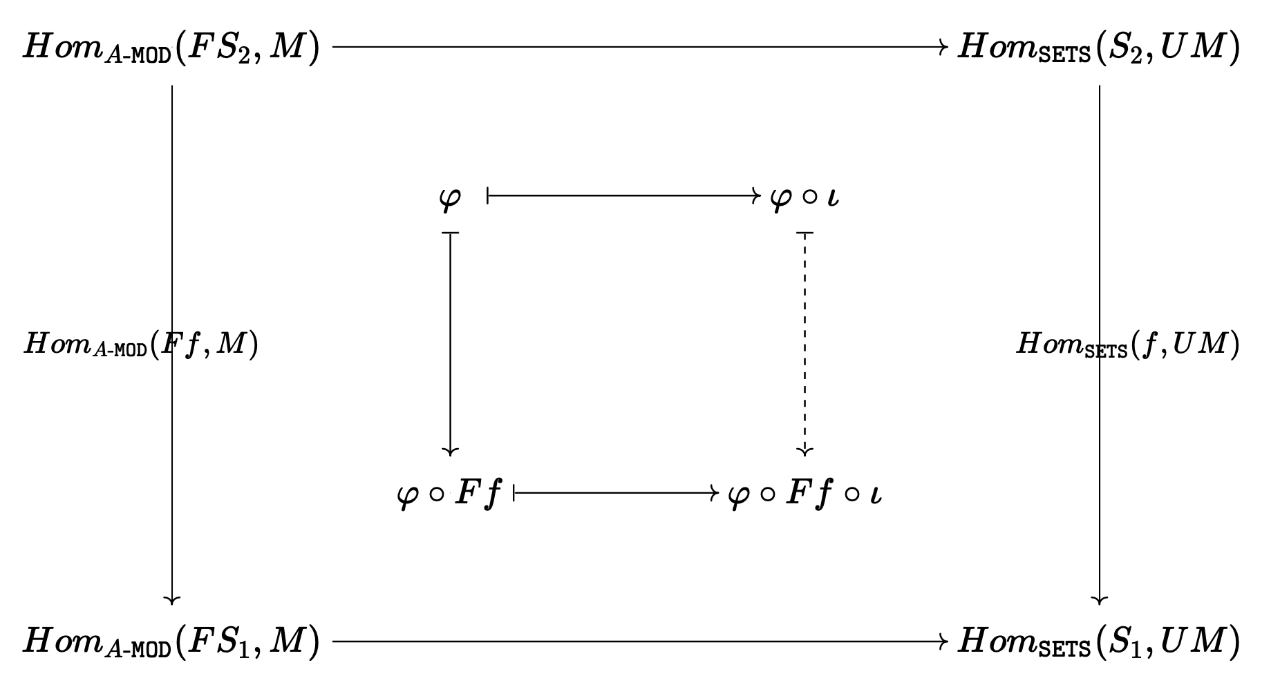 (이 때 $f:S_1\longrightarrow S_2$는 set map, $\psi:M_1\longrightarrow M_2$는 $A$-linear map.)