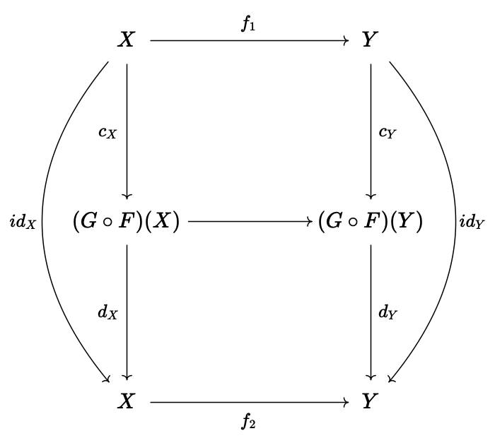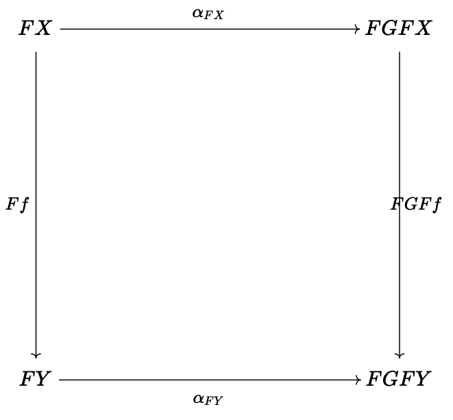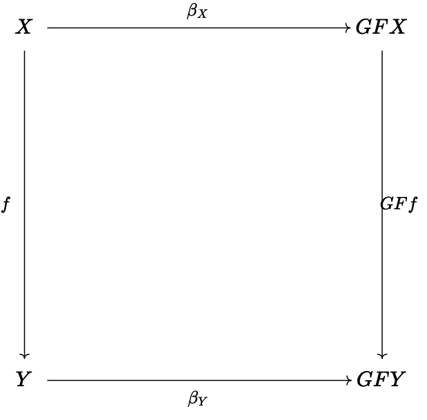 한편, morphism $g:FX\longrightarrow FY$로부터 $Gg:GFX\longrightarrow GFY$를 얻고, $f:=d_Y\circ Gg\circ c_X:X\longrightarrow Y$로 정의하면 $c_Y\circ f=Gg\circ c_X$를 얻는다.