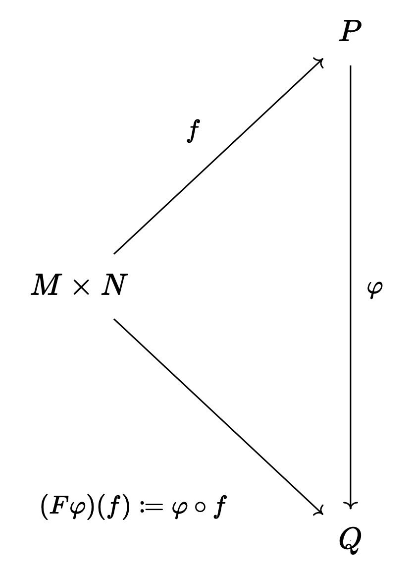 object는 $$P\mapsto Bil(M,N;P)$$로 대응시키고,